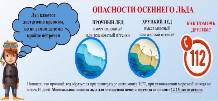 - алгоритм действий при проваливании под лёд;