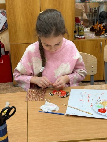 Родители вместе с детьми из кружка «Волшебные бусинки» под руководством педагога Софьи Вячеславовны Неподкосовой погрузились в мир традиционной русской росписи, узнав историю народных мотивов и техник. Каждый участник создал уникальную фигурку лошади, используя акриловые краски и декоративные стразы.