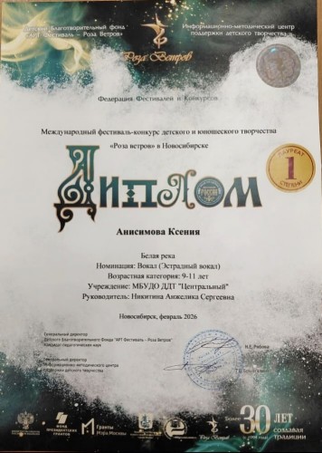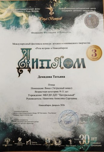 В феврале 2026 года девушки приняли участие в международном фестивале-конкурсе детского и юношеского творчества «Роза Ветров», который проходил в Новосибирске.