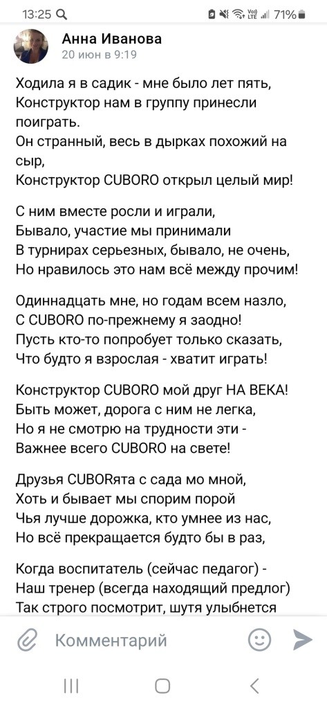 В начале лета официальным представительством компании Cuboro в России был объявлен конкурс стихов про Cuboro. В нашем МБУДО ДДТ "Центральный" есть ребята, которые знакомы с этим конструктором уже много лет, среди них Иванова Алёна.