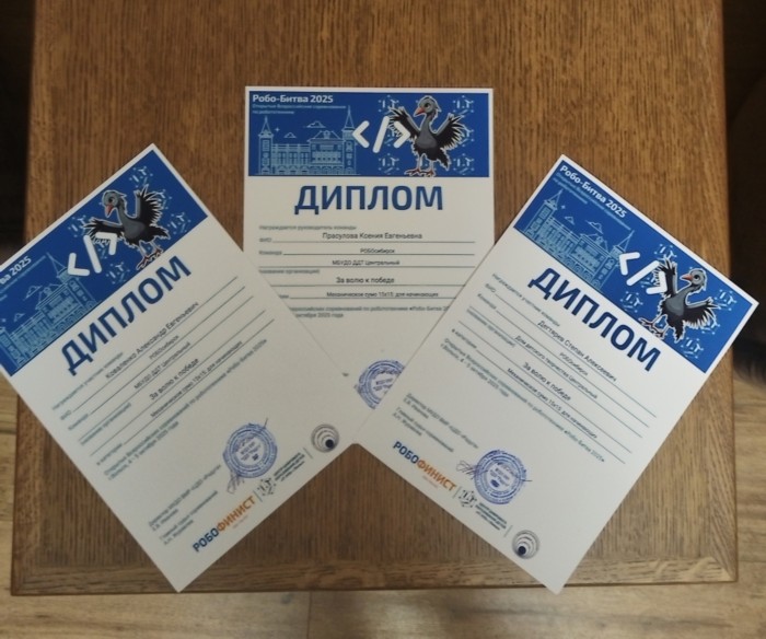 САМЫЕ находчивые и умеющие собраться в нужную минуту, когда кажется, что шансов больше нет – дипломом «За волю к победе» во Всероссийских соревнованиях «Робо-Битва 2025» в номинации «Механическое сумо 15х15: для начинающих» награждается команда «Робосибирск», в составе: Дегтярёв Степан и Коваленко Александр, наставник - педагог дополнительного образования Дома детского творчества «Центральный» города Новосибирска Прасулова Ксения Евгеньевна!