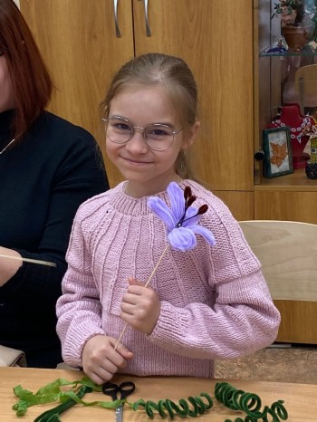 Наш талантливый педагог Софья Вячеславовна Неподкосова показала, как из декоративной проволоки создавать яркие и нежные цветы. Получилось так здорово! Теперь у каждой пары есть не просто букет, а целая корзина тёплых воспоминаний о времени, проведённом вместе.