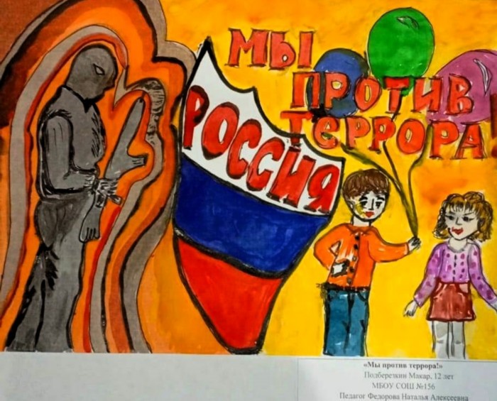 Благодарим всех участников, родителей и педагогов за вклад в подготовку и проведение конкурса. Ваше творчество помогает привлечь внимание к такой важной теме и призывает к солидарности всех людей в борьбе с терроризмом.