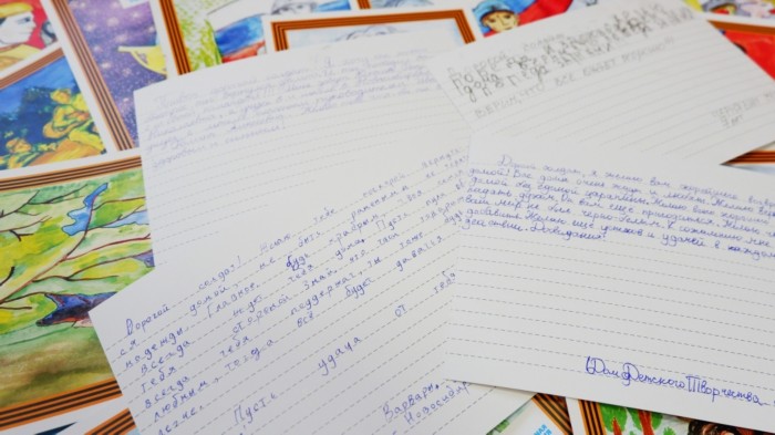 Особенностью этой акции стали специальные открытки, на которых были напечатаны рисунки наших ребят. На этих ярких открытках дети написали тёплые слова поддержки и пожелания.