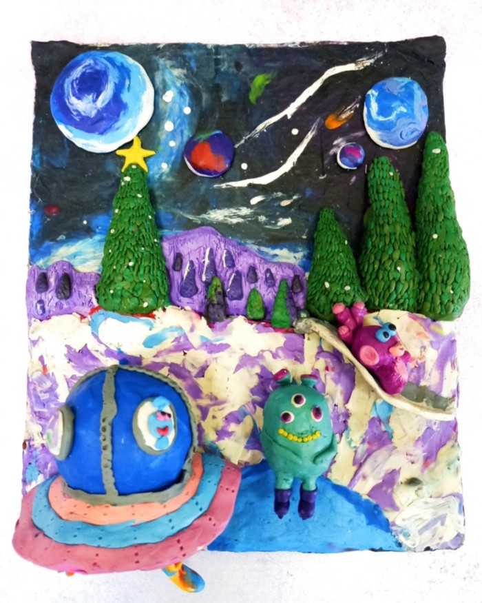 Коллективная работа ребят студии ДПИ "Мастер" (педагог Зенкова Наталья Ивановна) - "Космический театр" тоже награждена дипломом Лауреата I степени.
